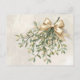 Elegant Watercolor Mistletoe and Gold Bow Holiday Postcard