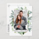 Elegant Watercolor Pine Frame Merry Christmas Couple Photo Holiday Greenery Postcard