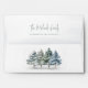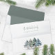 This design features an elegant Christmas custom envelope, with a watercolor pine trees, winter green, with the return address on the back flap, with a simple minimalist, script typography, with woodland forest, a seasonal design, a classic calligraphy style.