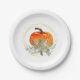 Serve your holiday meals with rustic elegance using these paper plates featuring a watercolor pumpkin accented with greenery and framed in a gold-style geometric design. Perfect for Thanksgiving dinners or Friendsgiving parties these plates bring cozy seasonal style to disposable tableware.
