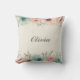 This trendy personalised throw pillow features elegant sketchy flowers on top and down with soft watercolor textures in blush pink and mint green.