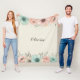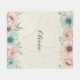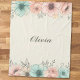 This personalised blanket features elegant sketchy flowers on top and down with soft watercolor textures in blush pink and mint green.