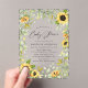 Celebrate the mum-to-be with our elegant sunflower baby shower invitations! Showcasing your shower details framed by a beautiful border of watercolor sunflowers and lush green foliage, this design brings a touch of natural elegance. The frosted or transparent acrylic background adds a modern and sophisticated flair, making these invitations perfect for a bright and cheerful baby shower celebration.