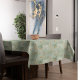 Transform your dining space with this elegant watercolor floral tablecloth featuring a seamless abstract background in soft mint green