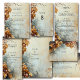 Elegant wedding response card with a pretty brown, blue and grey, watercolor background with golden grapevines. Personalise to create the perfect rsvp card for your vineyard wedding.