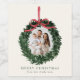 Elegant Watercolor Wreath with Bow Photo Holiday Wine Label