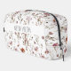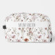 watercolour wild flower Dopp Kit with pretty wild country flowers in purple, lavender, green leaves and more, with name personalisation.