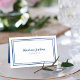 Simple, minimalist and chic wedding guest place cards feature a modern design with a double framed border in classic blue on a crisp white background. Design allows the ability to fully customise your place cards with couples names, wedding date, guest name & table number! Order each card separately after customisation of guest name with the template. *****Please note, you will need to use a straight edge or ruler to add a crease and fold in half. ***** When folded in half, the front of the card features the guest name and table number. The back of the card features the name of the bride and groom and wedding date in beautiful matching script. The card is tastefully completed with solid matching blue on the inside for that perfect completion of colour. Email invitationsuites@gmail.com of use the message feature in this product link for questions or custom colour request.