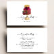 This elegant bakery or cake decorating business card features a burgundy and gold wedding cake illustration. Customise it with your business name in black handwriting script with swashes at the beginning and end, and your contact information in black sans serif font. (To keep the swashes, replace only the letters in those text fields, leaving the symbols in place.)