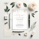 This design features an elegant wedding invitation, with a simple classic calligraphy script, a classy modern minimal, chic design, with a rustic, greenery, boho style.