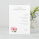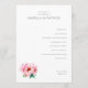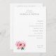 This is a minimalist style image featuring an elegant wedding ceremony program for Isabella & Patrick. The design is clean and sophisticated, with soft pink peonies adding a touch of romance to the bottom left corner. The text is neatly organised, listing the ceremonial proceedings in a simple yet graceful font. It exudes a warm and inviting atmosphere, perfect for marking this special occasion. Ideal for couples who appreciate understated elegance and want their guests to feel welcomed and informed.