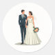 Includes 20 small stickers on one sheet. A classy sticker featuring a traditional wedding couple—the a groom in a navy suit and a bride in a white gown holding a floral bouquet.