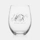 Elegant Wedding Couples Initials Script Monogram Stemless Wine Glass
