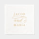 Elegant wedding foil napkins include pretty calligraphy script and the beautiful wedding couple's names in custom classic typography.