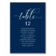 Wedding Dinner Guest Seating Table Chart Card, Modern Elegant Navy Blue Script.