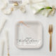 A bride in her wedding gown and veil with your details in chic lettering on a pale taupe background, or any colour you choose, these square paper plates are perfect for your bridal shower. MATCHING items in our collection.
