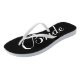 Elegant wedding flip flops for groom and bride. Custom strap colour for him and her / men and women. Custom background colour and personalizable with name initials. Modern black and white his and hers sandals with stylish script calligraphy typography. Cute party favour for beach theme wedding, marriage, bridal shower, engagement, anniversary, bbq, bachelorette, bachelor, girls weekend trip etc. Make your own classy flipflops set for bride and groom, bridesmaids, flower girl, mother of the bride, groomsmen, team bride, guests etc. Fun souvenir slippers for summer destination wedding in july and august. Also nice for just married honeymooners going on holiday.