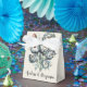 A meticulously illustrated bouquet of flowers. The flowers are predominantly in shades of green and grey, with intricate details highlighting their petals and stamens. There's a distinct red bud on one of the stems, contrasting beautifully with the cool tones of the rest. The leaves and stems are depicted with varying shades of green, giving depth and dimension to the composition. The entire arrangement is set against a white background, allowing the colours of the flowers to pop and the details to be clearly visible.