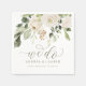 Elegant White Floral & Greenery Foliage Watercolor Bouquet Wedding Reception / Bridal Shower Napkins. This design features a beautiful white floral watercolor bouquet...with hints of silver glitter...above your names in the centre. The words "We Do" are written in a unique soft modern calligraphy style. Edit your names, wedding date and location. You can change the colour of your text and resize and move your design.