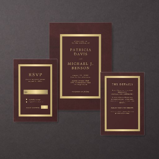 Simple elegant deep burgundy gold metallic weddingDesigned by Anka Designs