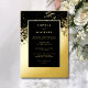 Celebrate love in its most luminous form with this minimalist gold wedding invitation editable template, where elegance meets understatement. Featuring radiant rose gold foil on dramatic black backdrop, the design evokes quiet luxury and timeless grace. The front showcases refined typography and a clean layout—perfect for modern couples who favour simplicity with impact. On the reverse, additional information can be added as well as a full-size photo adds a personal touch, turning the invitation into a keepsake. Ideal for romantic weddings, black-tie affairs, or any celebration where love deserves to shine.
