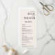 Wedding menu insert for folded linen napkin