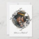A simple chic monogram watercolor floral grey, cream, and beige wedding menu card. Easy to personalise with your details. Modern boho wedding menu card editable, wreaths photo wedding invitation, customisable, calligraphy handwritten font, simple, elegant.