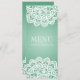Elegant wedding "Menu" design with romantic Vintage Lace Mint Green and custom text. Impress your family and friends with this stylish and modern design. Fully customisable! Easy to use and easy to personalise. Order Today!