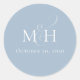 Elegant Wedding Minimalist Monogram Dusty Blue Classic Round Sticker