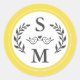 Elegant Wedding Modern Monogram Yellow Grey Favour Classic Round Sticker