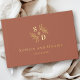 Elegant wedding guest book with the bride's and groom's monogram and greenery leaves, and names below, in real foil. The terracotta brown background colour can be changed in the design tool.
