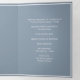 Crafted with meticulous attention to detail, this tri-fold wedding program boasts a sophisticated design that sets the stage for your special day. The soft, dusty blue hue paired with pristine white creates a serene backdrop, evoking a sense of tranquillity and romance.