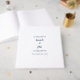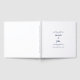 Elegant, classic navy blue and white Wedding keepsake Guest Book features a romantic design in timeless chic blueon a transparent background. Two delicate decorative flourishes each containing a single heart envelope the name of the bride and groom and symbolise that two hearts become one. Traditional wording provides timeless yet modern sophistication. Personalise wedding design with your details in beautiful blue lettering and script. Couples married names and wedding date accent the side spine of the book. The back of the book reflects simple minimalist design and is solid in colour.