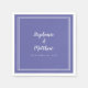 Simple, minimalist and chic Wedding napkin features a modern design with a double framed border in crisp white on a trendy periwinkle blue background. This modern simple design provides timeless, classic sophistication. Personalize names of couple and event date in elegant white lettering and script. These are a perfect accompaniment for any wedding party! Be sure to see the collection link on this page to view all of the matching items! Please direct questions or custom requests to invitationsuites@gmail.com.