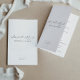 Introducing our Minimalist Elegance Wedding Program, a perfect blend of simplicity and sophistication for your special day. Designed with a keen eye for detail, this folded program features elegant calligraphy that gracefully flows across its clean, crisp layout. The minimalist design ensures that the focus remains on the essence of your ceremony, outlining the order of service in a beautifully understated way. Ideal for couples who appreciate the beauty in simplicity, this wedding program is sure to add a refined and memorable touch to your ceremony.