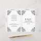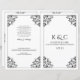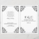 Nadine Wedding Program Foldover (Black): Let your guests follow along with your wedding order of service with this unique vintage corners wedding program template in gold. These will come unfolded (with no crease). The design colour is set in a rich black, but you can change the colour of the design by changing your background colour. **HOW TO CHANGE YOUR DESIGN COLOR** 1) Click the "Personalise" Button. 2) Click the "ClICK TO CUSTOMIZE FURTHER" link at the bottom. Then you will have the option to change your "BACKGROUND COLOR" to your wedding colour. Don't forget to change your text colour to match your design.