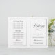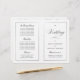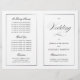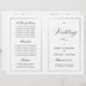 This program is an 8.5 x 11 page that requires you to fold it to assemble. The line border fades at the corner and this is intentional to match the script style. Classic understated black and white wedding program with a modern touch featuring the elegant script of the word "Wedding" on the outside "cover".