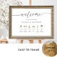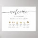 Welcome your guest to your reception with this elegant order of events, wedding timeline sign. Design with beautiful golden watercolor timeline images and delicate handwritten calligraphy details. Clean, minimal, and simple design full of elegance and grace. Ability to easily add on template your own times and text below images. If needed, you can edit this design using Zazzle's design tool and re-arrange the images to suit your own timeline needs. "IMPORTANT NOTE: This sign is in premium poster paper style, easy to frame or glue/staple to inexpensive MDF or foam board for display. If your prefer this sign prepared for display already in a foam board, please follow this easy steps: on this sign product page, scroll up, until you see a section with images called "Transfer design to a product". Use the arrow on the images to look at all the options, until you reach the "Foam Boards" option. Click on it, and it will transfer the design into a foam board for you. Initially, sometimes it transfers the design into a very big foam board size, nevertheless, you can change the sign into the size you need right there on the product page and even see how it looks already in a stand. When you add this design to your shopping cart, it will tell you the back side is in black. Don't worry about it, as this only means that the back of the sign will be white. If you need help, please send me a message and I'll get back to you as soon as possible". Part of our "Modern Elegant Wedding and Events Signage" collection with a variety of coordinating products available. Dimensions of sign in demo photo with stand: 28" x 20"