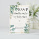 A refined wedding RSVP card featuring watercolor greenery leaves and a delicate gold frame. Perfect for collecting guest responses, this elegant design complements modern and timeless wedding stationery suites, including invitations, menus, and thank you cards.