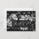 Elegant wedding "RSVP" design with romantic Silver Floral Glitter Swirl, night sky with stars and sparks, on black background, and custom RSVP text. Impress your family and friends with this stylish and modern design. Fully customisable! Easy to use and easy to personalise. Order Today!