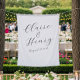 Make a stylish statement at your wedding with this elegant script tapestry backdrop, designed with modern handwritten calligraphy and a clean, minimalist layout. Whether used behind the sweetheart table, at your ceremony altar, or as a photo booth backdrop, this fabric banner creates a romantic focal point with its oversized lettering and timeless aesthetic. Perfect for couples seeking a sophisticated, modern look, this design complements a variety of wedding styles—from classic black tie to contemporary garden celebrations. Available in multiple sizes to suit your space, and fully customisable with your names, date, or a meaningful quote.