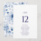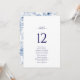 Make your wedding seating both stylish and organised with this elegant double-sided card. The front features a clean, minimalist design with the table number and guest names displayed in a refined serif and script layout. On the reverse, a soft blue floral pattern adds a romantic and graceful touch. Ideal for weddings, receptions, or formal dinners, this seating card combines practicality with sophisticated design.