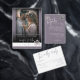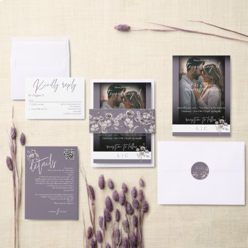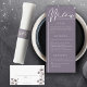 The delicate watercolor botanic floral illustration in gloomy greys and dusty purple gives it a modern romantic design. The flower can easily be deleted if you desire an even simpler design. Click on open design tool to make custom changes.