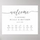 Welcome your guests with this elegant wedding welcome sign with a timeline! Ability to customize this sign with your details and your own wedding timing. If needed, you can select customize further using the editing tool and re-arrange or move icon images and their text to suit your timeline needs by selecting images, or their text on the editor screen and dragging them to where you like. Modern handwritten calligraphy details. Stylish, simple, and clean design. "IMPORTANT NOTE: This sign is in premium poster paper style, easy to frame or glue/staple to inexpensive MDF or foam board for display. This same sign design is also available in foam board presentation ready for display, which you can find in our collection". Part of our "Modern Elegant Wedding and Events Signage" collection with a variety of coordinating products available. Dimensions of sign from demo photo with stand: 24" x 18"