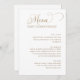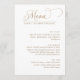 Elegant white and gold Menu card with beautiful hand written calligraphy details and block typography. Elegant, clean and simple classy flair. Ability to add your own menu details. If needed, you can adjust text space, size or style by selecting customise further. Back with gorgeous "the Wedding of" detail and ample space for your names and wedding date. NOTE: "Menu" and "Wedding" in faux foil, rest of text in golden hue. Part of our " Elegant Calligraphy Minimalist Wedding Collection" with a variety of coordinating products available. Visit the entire collection at: https://www.zazzle.com/collections/elegant_calligraphy_minimalist_wedding_stationery-119497981924462546