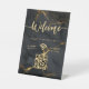 Make a memorable impression with our Elegant Welcome Script WIFI Agate Black Marble Pedestal Sign. This simple yet elegant design features an elegant welcome script with simple wifi logo below in a modern style against a faux agate black gold marble background. Network information including password is nicely layout in a spacious manner.