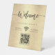 Elegant Welcome Script WIFI QR Code Metallic Gold Pedestal Sign