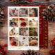 Elegant year in review 12 photos for 12 months gold foil script text "What A Year!" with foil snowflakes. Back features a holiday floral pattern with an arched panel for your family Christmas or holiday letter. Placeholder template photos courtesy Unsplash.