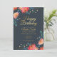 Elegant, Whimsical Flowers, Dark Blue, Gold Accent Invitation