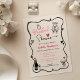 Celebrate the bride-to-be with this elegant hand-drawn bridal shower acrylic invitation. Featuring whimsical illustrations in contrasting black, modern handwritten script-inspired fonts, girly bows, and pink hearts with a retro flair, this elegant invite is perfect for a stylish champagne brunch, a romantic wedding shower, or a unique garden party for a soon-to-be-bride. Feel free to reach out if you need any help with customization.